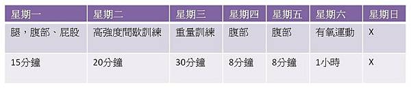 下面是屬於輕量級的一周運動時間都不久,上班日晚上時間都很寶貴"加班、接小孩、煮飯、倒垃圾、整理家裡、看電視、洗澡"當要睡覺都12點